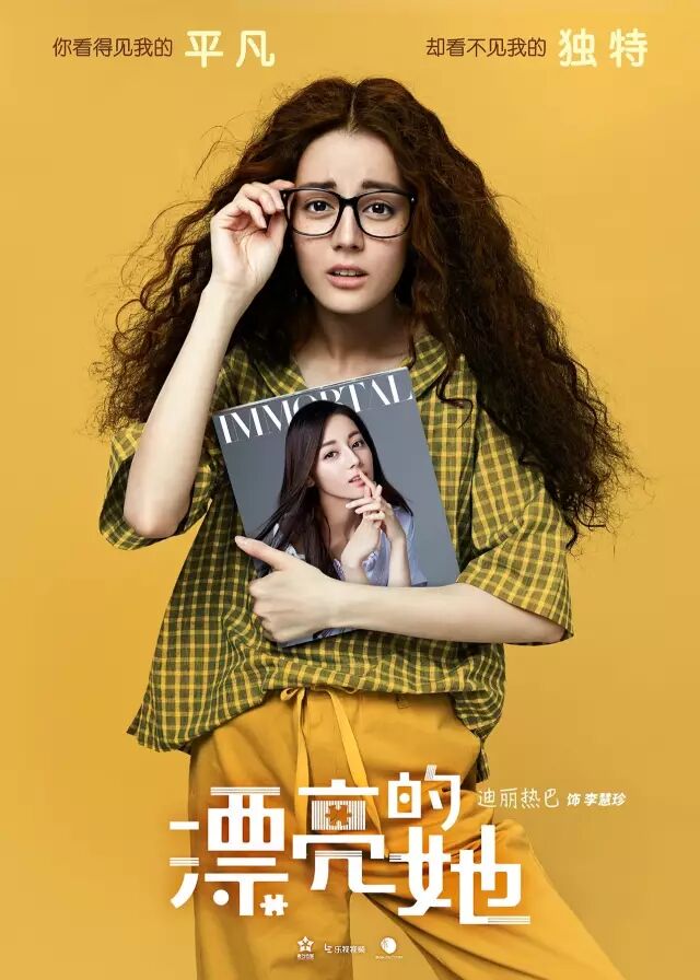 此番片方曝光的双面人物造型海报便给出了答案,迪丽热巴饰演的女主角以一脸雀斑和一头爆炸式卷发亮相,而手中所捧剧中时尚杂志《IMMORTAL》的封面却是属于迪丽热巴自己的美丽时尚范儿;