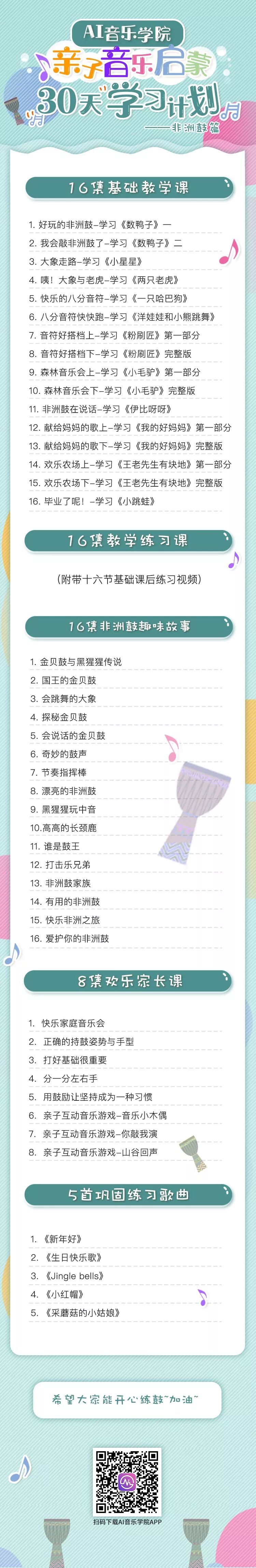 咱们学堂联合AI音乐学院,为大家带来了为期30天的非洲鼓训练营,让孩子们30天轻松学会16首曲子,还免费赠送非洲鼓一只!