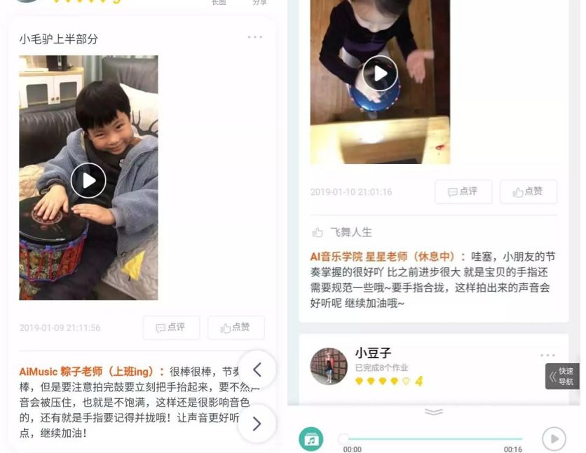 每天老师会在社群内布置当天需要在AI音乐学院APP内学习的内容和需要完成的作业。每天的任务完成之后,家长们可以在小程序中上传自己的作业视频。