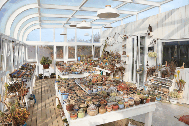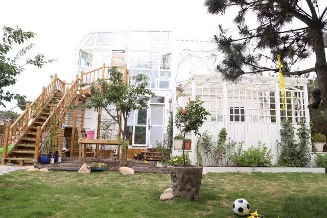 玻璃房内是二木打造的“多肉花园”,木制楼梯可以直接通到多肉玻璃房。城堡的设计装修,全部由二木一手包办。由于城堡内外以大面积的白色调为主,他特意搭配了浅色家具,以及随处可见的绿植,一股清新的感觉扑面而来。