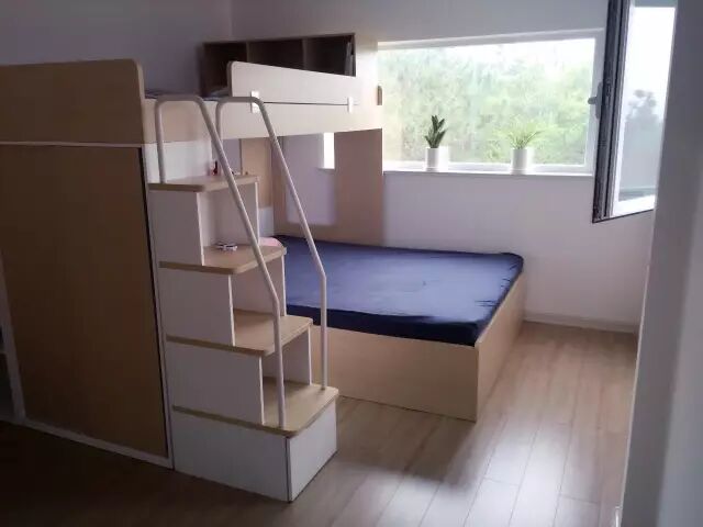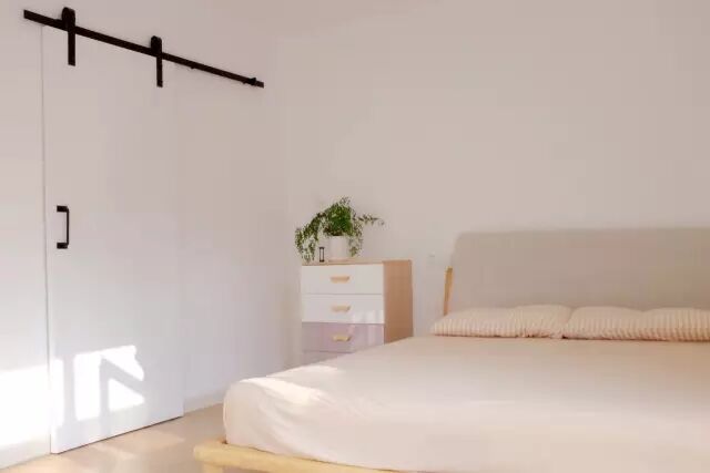 二木的白色城堡共两层,由三个集装箱拼装而成。一楼一共112平米,包括几个日常的起居空间;二楼56平米,包括两个卧室,一个女主人的拼布工作室,一个卫生间。