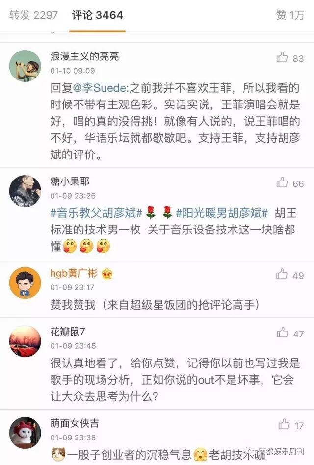 9日,歌手胡彦斌在微博发了一篇科普贴,从技术角度分析王菲演唱会唱歌不好,现场跑调一事。