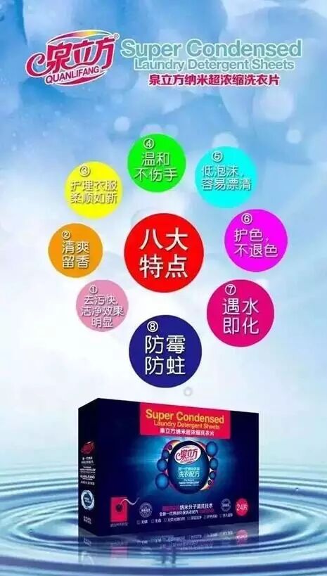 泉立方是由梵大集团引进德国的洗衣神器“纳米超浓缩洗衣片“。它仅仅4克,却能清洗3公斤衣物;它绿色健康,清洗过的水能养鱼;它无荧光增白剂,可以放心清洗儿童衣物。
