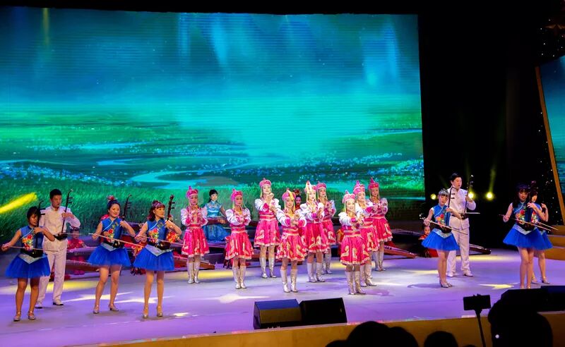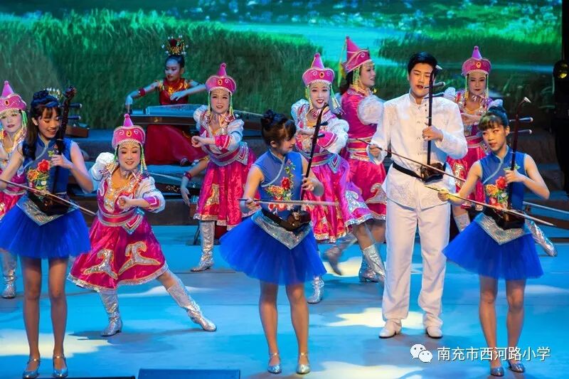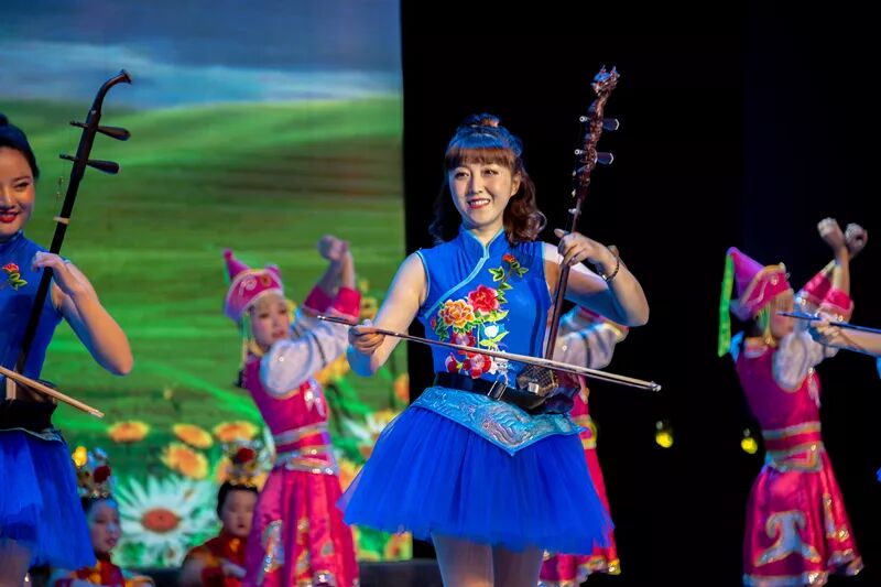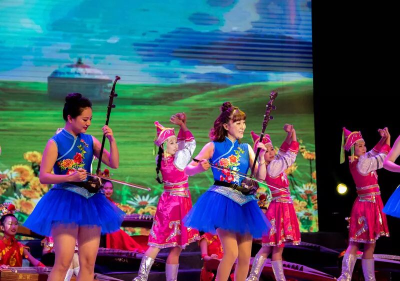 舞台上的气氛热烈,袁静老师和孩子们精彩演绎了经典二胡曲目《万马奔腾》,音调激奋昂扬、节奏铿锵!听这首曲子,脑海里马上会浮现骏马奔腾的场景!加上刘珍珍,杨丽,宋田、冯思宇等十位老师优美又不失英气的蒙古舞蹈,使表演效果震撼全场,掌声雷动!我们的节目受到了上级领导和区内兄弟学校的一致赞誉。
