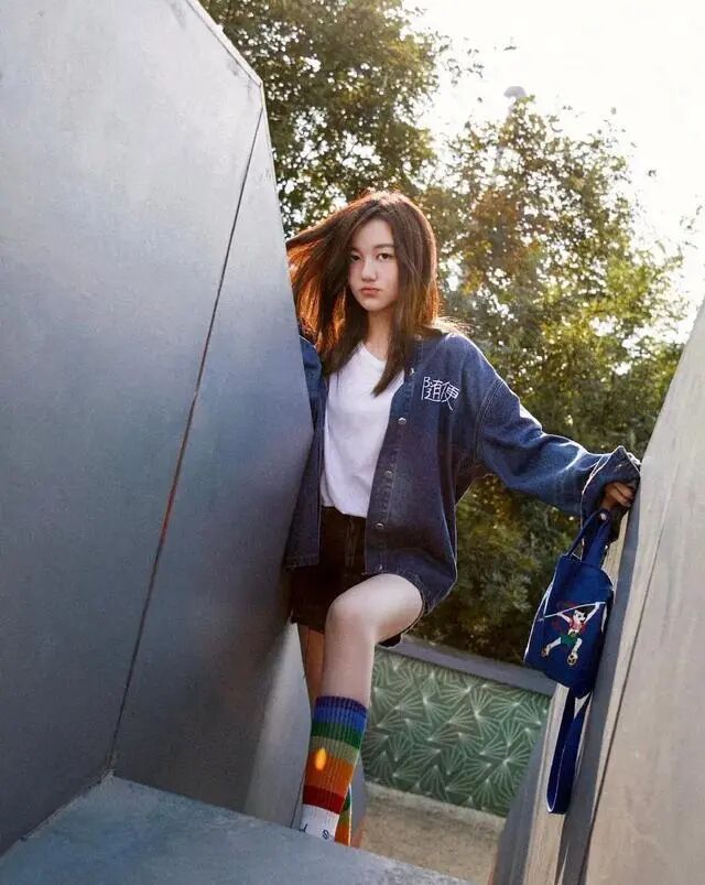 海哈金喜则是多色条纹毛衣,配上蓝色牛仔裤和绿色运动鞋,戴上墨镜留着一头利落的短发,显得特别干练。
