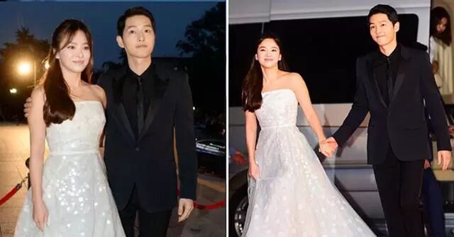 《太阳的后裔》热播之后,宋欧巴和乔妹一起出现在了百想艺术大赏的红毯上。白色抹胸波点长裙扎起半头,挽着宋仲基的手仙气逼人。