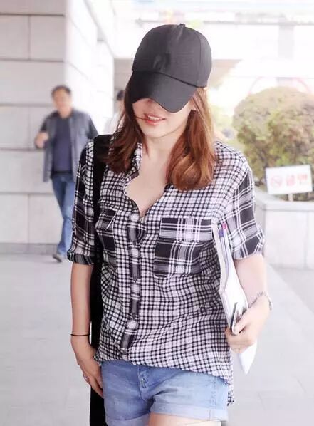 宽松的衬衫+搭配牛仔短裤,胳膊粗的美眉夏天可以穿这种袖口宽松的衬衫很遮拜拜肉的哦