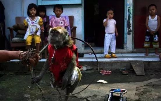 一位游客曾经深入印尼首都雅加达,追踪调查那些街头卖艺的猴子。