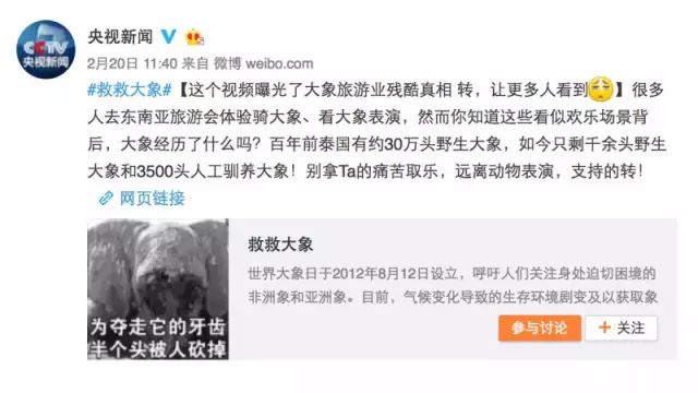人民日报、央视等媒体纷纷转发,连明星都站出来力挺,印象最深的是江一燕说的 ——“在非洲,我看到许多野生大象不再长出庞大的象牙,因为人们残暴的掠夺杀戮,改变了它们的进化!”