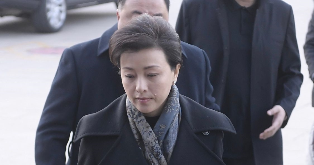 杨澜黑色立领大衣+黑色西装裤的穿搭