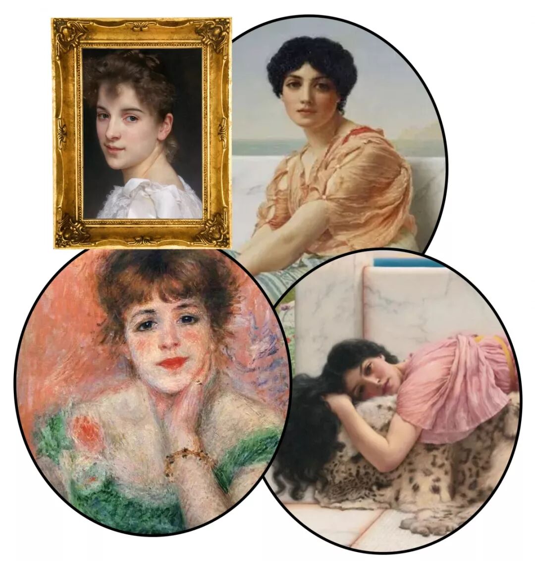 其实还可以注意一下刘海,很多油画都有这个细节,画中的女生刘海方向都是有一个向上的弧度然后才往下,而不是直直的挂在脑门上。