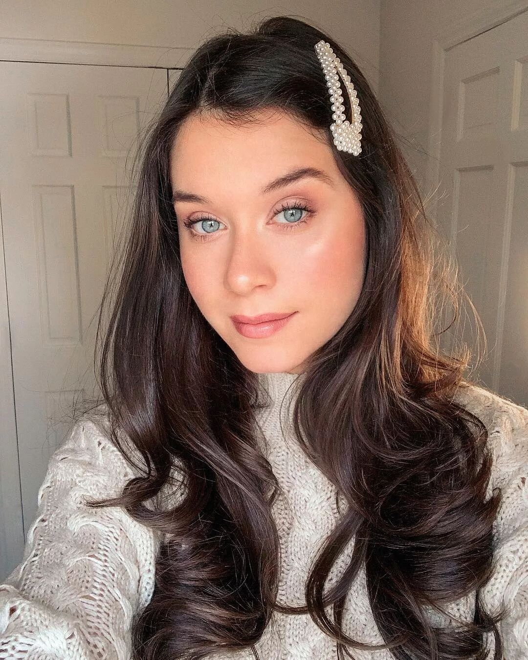 这样的刘海显得更加浪漫,使妆容更完整,可以用卷发棒将刘海发尾往相反的方向卷一下就可以啦。