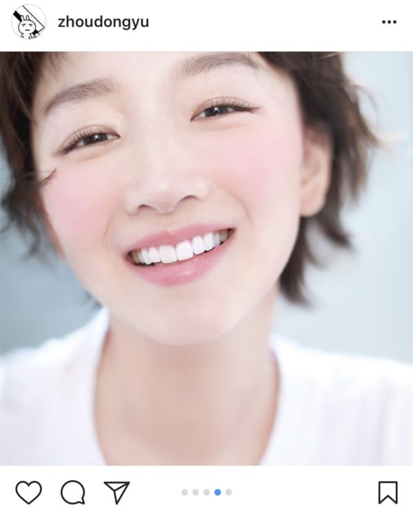 周冬雨这款就更弱了,就在脸部和鼻头带过了一抹红色,不过这样更适合她。