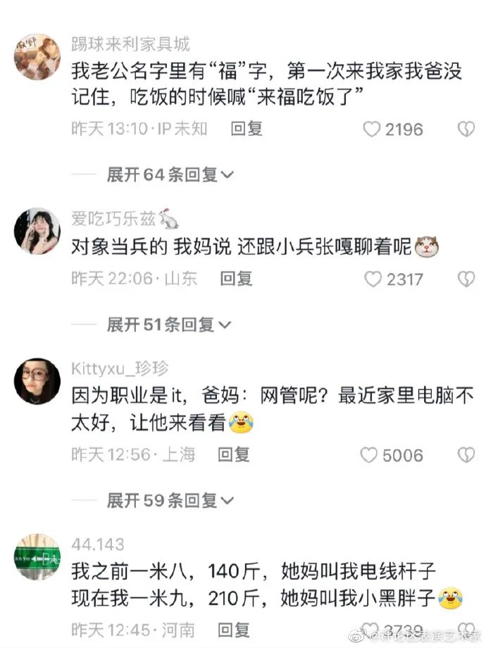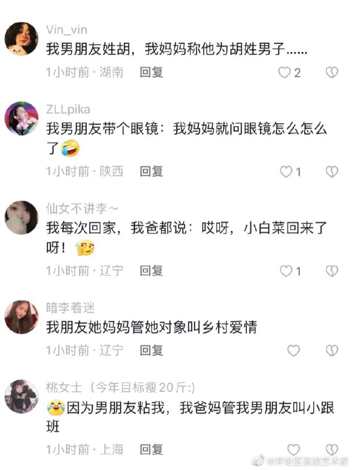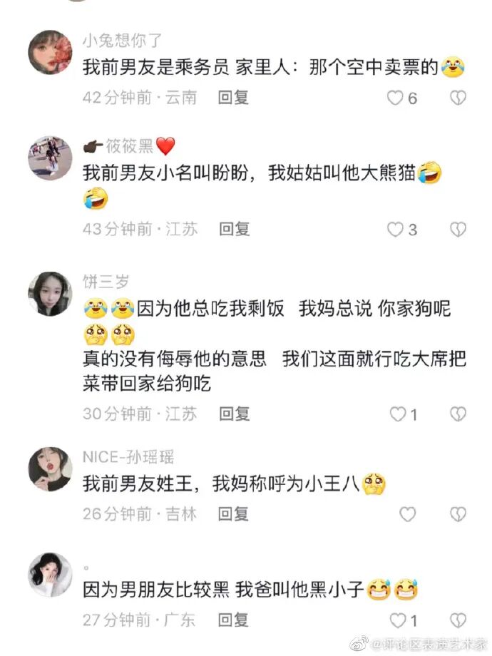 1.父母给男朋友取的外号,都是有些阴阳怪气在身上的哈哈哈哈。@评论区表演艺术家