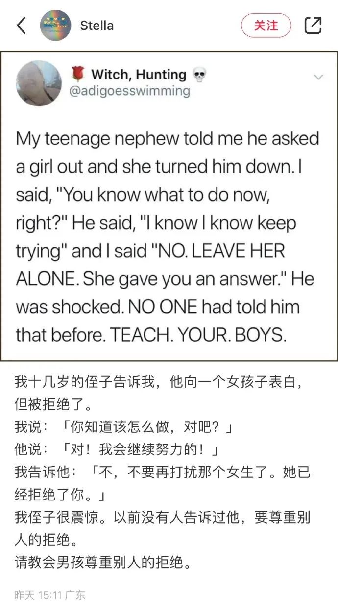 4.我也发现了,无论是影视剧还是现实生活里向女孩表白被拒后,人们都通常会鼓励那人别放弃,但很少有人会说:“要尊重别人的拒绝。” @insgirl