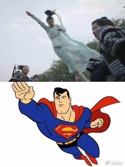 雅兰珠营救战北野时的这个飞踹,除了威亚没有任何的防护措施,踹完倒地也是结结实实地摔在地上,张雅钦曾在采访中说:“拍完这场戏,后背全是淤青,但如果能给珠珠添彩,我什么都愿意做。”听说张雅钦拍摄出场落水那场戏时,不仅呛了好几口河水,还泡掉了隐形眼镜,也是很拼了。