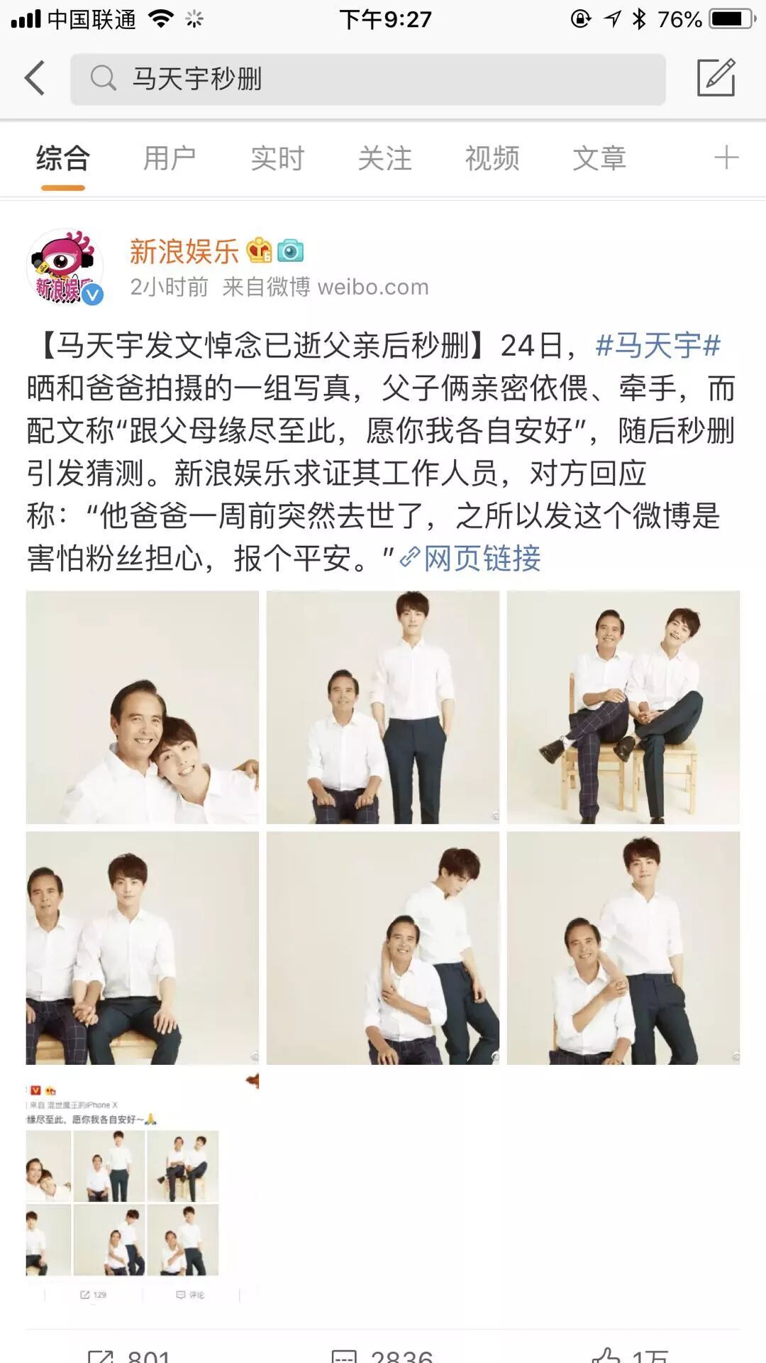 唉,虽然不是马天宇的忠粉,但是看到他悼念父亲的微博,也是鼻子一酸。