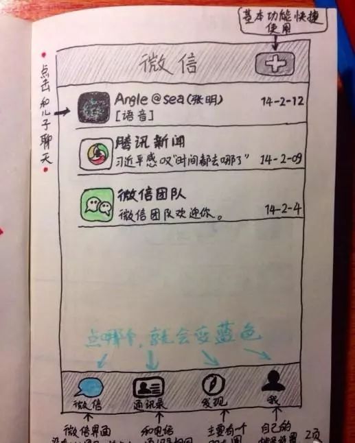 “换了手机后,看着妈妈那些笨拙的动作,心里很酸,这一次回家明显能感觉到,父母年龄大了,头发开始白了,心里特别难受。后来回北京知道他们为微信着急,更担心他们的身体了。”为了不让家里的父母着急上火,张明手绘了9页微信教程给父母,详细的使用过程,配上一些温馨的提示,爸妈终于能上手了。