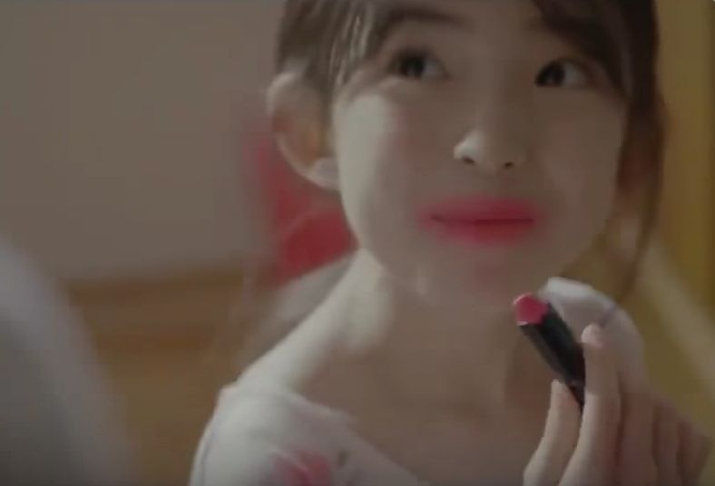 但细看之下,小女孩似乎并不正常——她会胡乱的把妈妈的口红画在嘴上,还会弄坏其他的口红;