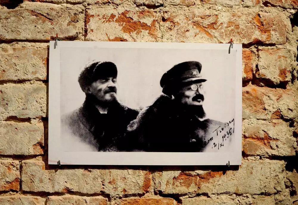 2012年4月2日,俄罗斯莫斯科,“代表消失:斯大林时期歪曲的照片及艺术”历史图片在俄罗斯古拉格国家历史博物馆展出。这些照片都是由美国摄影师大卫·金拍摄的。图右是托洛斯基。来源:视觉中国。
