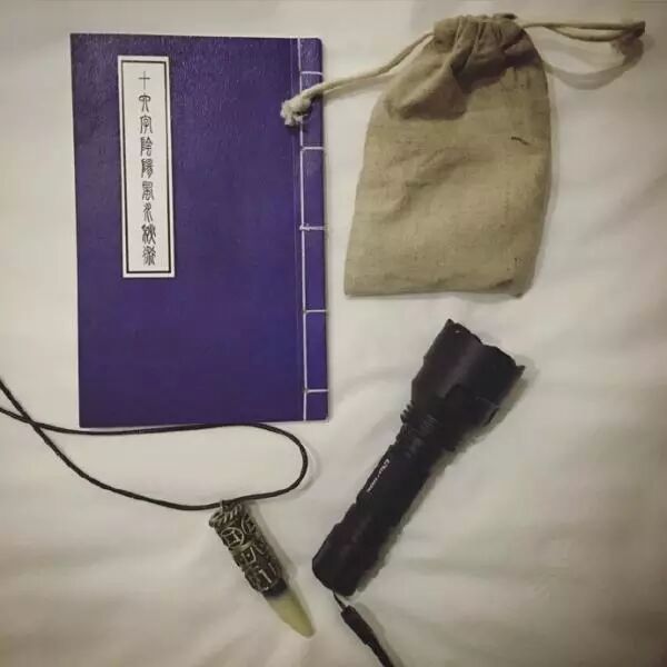 坦白说,这是澎湃新闻记者参加过的最“奇幻”的发布会——每个嘉宾都会收到一个“探险背包”,里面有糯米、蜡烛、手电筒和摸金符,还有一本《十六字阴阳风水秘术》。没错,就是胡八一的传家宝——天下第一风水奇书。