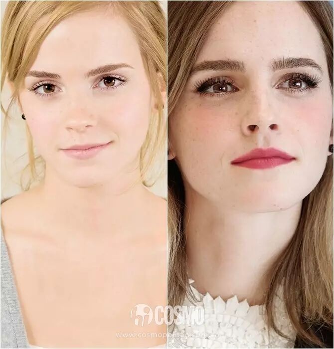 薄唇只要一大笑,上嘴唇基本就看不见了。Emma也知道这会影响她上镜,所以在很多时候她的笑都是练过的。