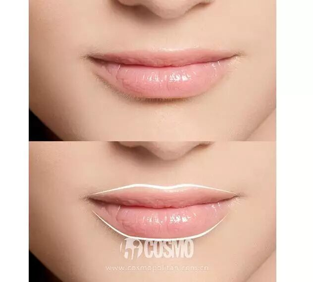 STEP1:首先调整唇形,如果你的嘴唇只是薄但很对称的话,只需让轮廓更饱满一点就可以。