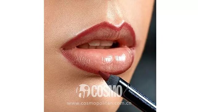 STEP1:先用唇线调整好唇形,唇线的颜色可以深一点。