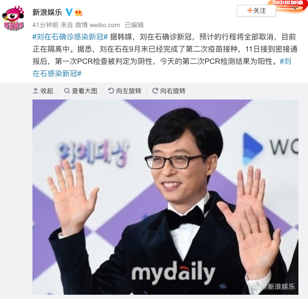 刘在石感染新冠!