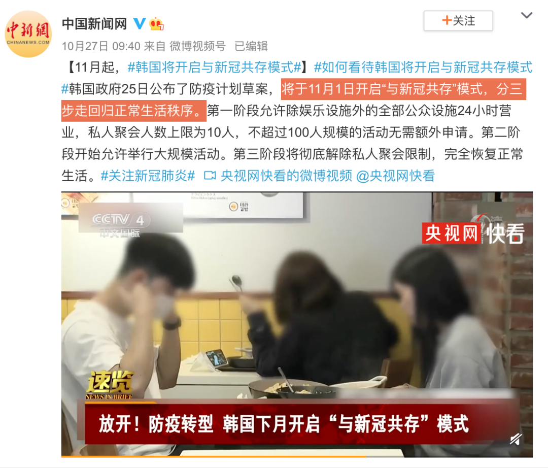 于是11月起,韩国就开启了“与病毒共存”模式