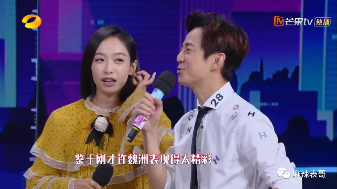 也是《快乐大本营》的时候,许魏洲参加节目,和大家一起玩一个游戏。