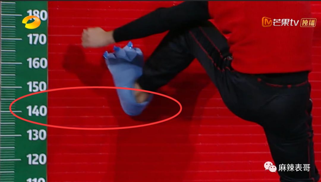 游戏内容就是看谁把鞋子踢得最高。当时梁靖康先来,踢到了170。