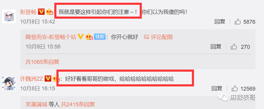 许魏洲也下场评论,说“好好看看哥哥的吻戏”