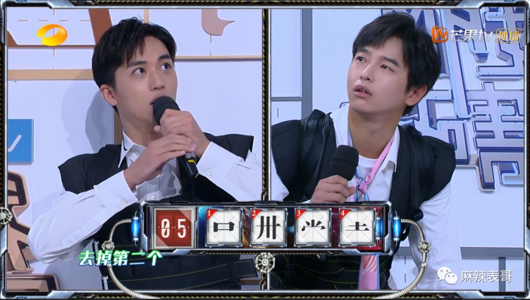 节目环节就是把汉字拆分,4选3组成一个汉字,看谁答得快。