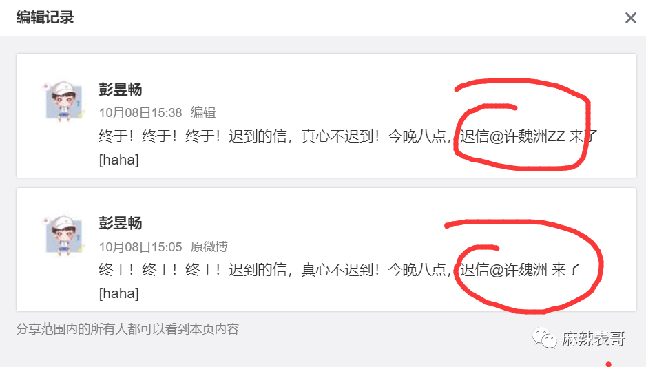 因为彭昱畅开始转发的时候,都还艾特错人了。
