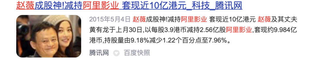 像如今的“女版巴菲特”赵薇,早年也曾经自称是“受伤的股民”,然而在结识了马云等贵人之后,就开启了人生的开挂模式,唐德影视投资暴赚178倍,阿里影业套现近10亿港币。至于后续因杠杆收购而翻车,那就是后话了。