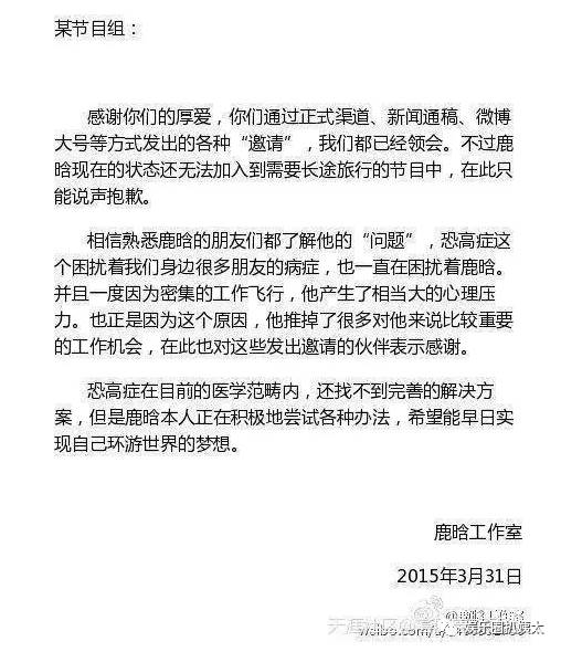 因为恐高,所以对他来说坐飞机简直是一种煎熬,没有完全强制性要求的时候通常他都不会选择飞机。