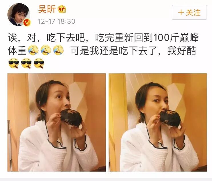 吴昕顶着素颜吃脏脏包,宁可胖回100斤巅峰,还要吃下去。吃一个脏脏包心理压力如此大,感受到了女明星保持身材的不容易。