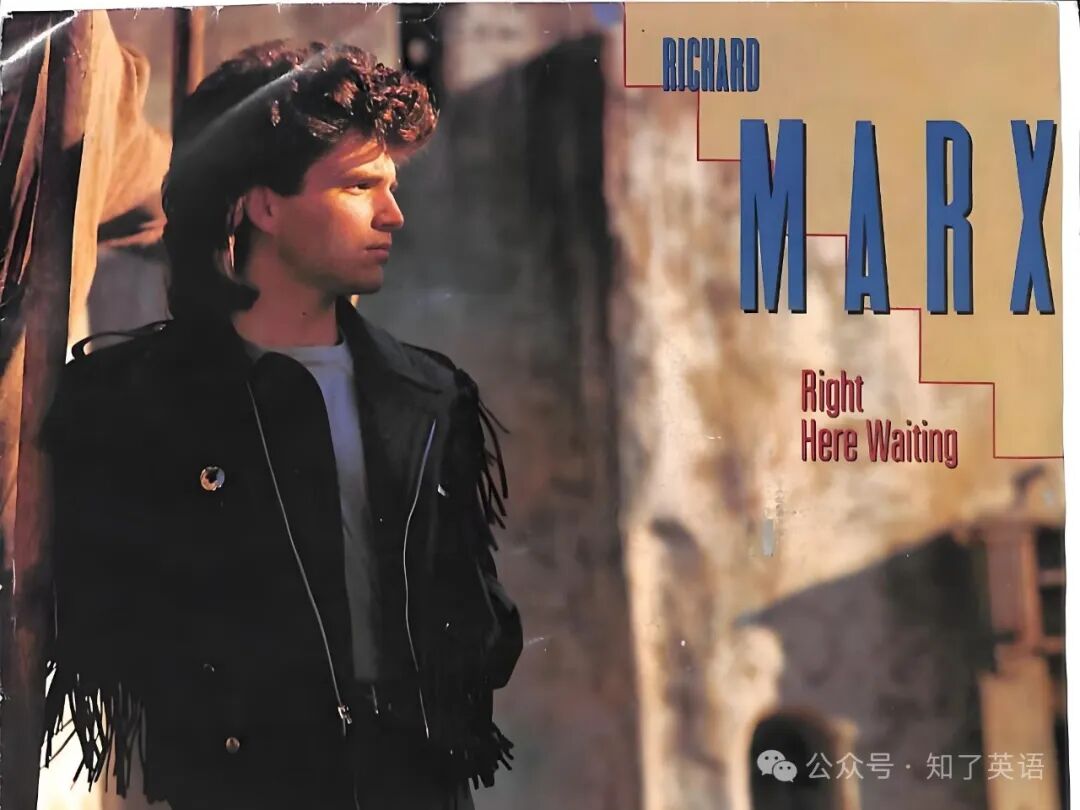 很久以前,Richard Marx(理查德·马克斯)在非洲巡演时曾彻夜不眠并锥心刺骨地思念着在他的故乡美国芝加哥的一个女子。她因为年龄比他大八岁而一直对婚事犹疑不决。理查德在电话中将这首最新创作的“Right Here Waiting”为她唱了一遍——沙哑并哀伤的嗓音与曼妙并跌宕的旋律深深触动了姑娘的心弦,好一个为爱情痛苦的人!后来她成为了他的妻子。