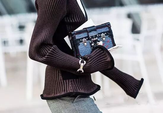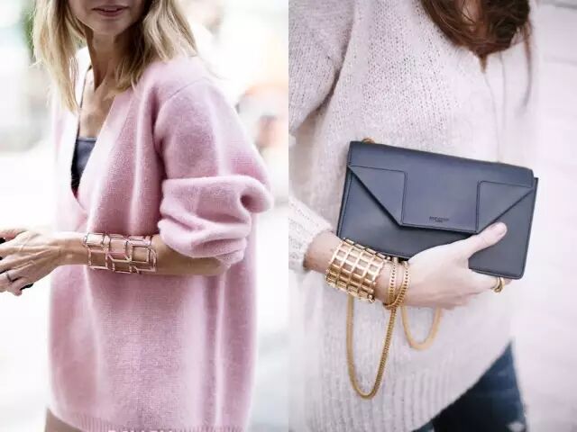 方形菱格的加宽手环,综合了毛衫柔软的质感,刚柔并济,堆砌却不显得啰嗦。