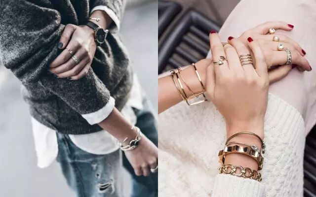 就像有人喜欢简单纤细的线圈戒指,有人喜欢夸张的宝石戒指,不管喜欢什么类型的戒指,叠戴不但可以帮你打破常规,更加时髦,帮你把那些旧戒指变得更有活力。