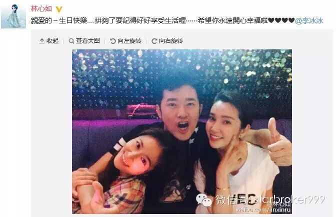 好友林心如则通过微博晒出她与李冰冰、任泉的三人合影,并为其送上暖心的生日祝福:“亲爱的,生日快乐,拼够了要记得好好享受生活喔,希望你永远开心幸福啦。”言语间满满的温馨祝福,微博发出后,不少网友都纷纷留言评论道:“祝女神生日快乐、天天开心、女神美美哒。”