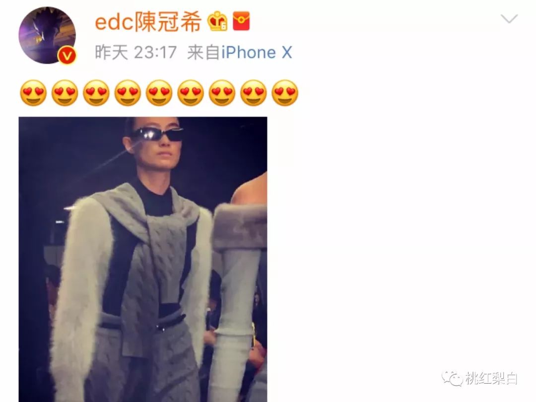 昨晚在微博也晒出了走秀照,一连串的星星眼看起来就很甜蜜。
