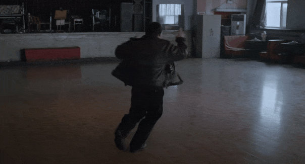 在决定要将自己心爱的女人送进监狱后,那段在舞厅跳舞的戏看得人心疼,他沉浸其中的舞姿,笨拙又透着暴戾。