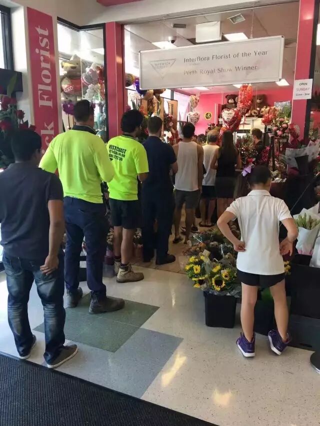 珀斯某花店排队的清一色的男人们..