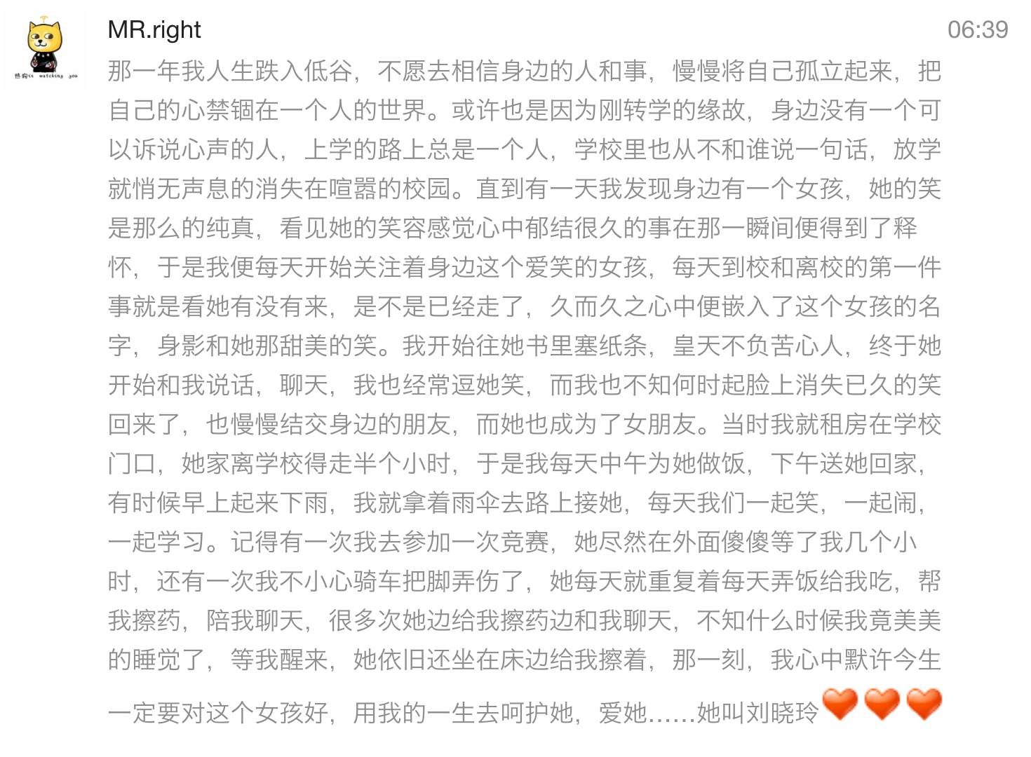 一段段深情的告白,暖心..