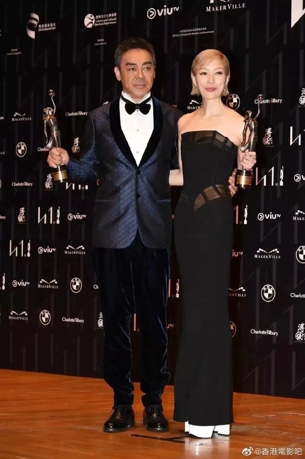 借他吉言,刚刚落下帷幕的第41届香港电影金像奖,刘青云斩获影帝。与他一同合影的是好友郑秀文,陪跑多年,拿下影后。