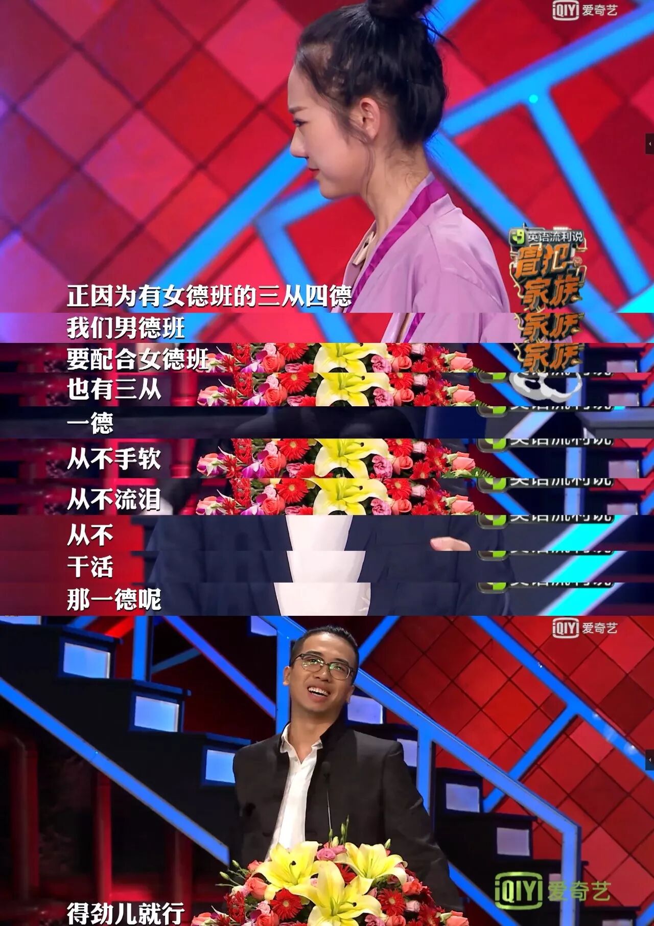 这期节目里还有一段让人哑口无言,就是男德学院那一段。前几天被微博上的女德老师雷的外焦里嫩,再看看这女德学院的配套课程——男德学院,算是明白了:两种课程现已加入加速家庭破裂豪华套餐,各位已婚人士你们自个儿品一品。