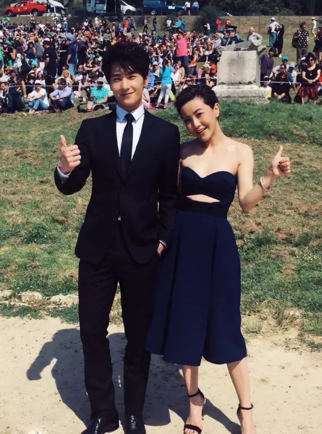 4月21日,里约奥运圣火在希腊雅典采集,郭采洁、杨洋作为火炬手参加仪式。郭采洁踩高跟增加气场,大露酥胸十分养眼。杨洋身着黑色西装,内搭白色衬衣,配黑色领带,一身正装也显得他