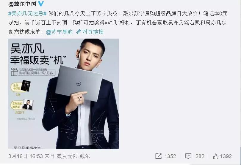 同样是代言品牌的消息,戴尔笔记本购机抽好礼,快去参加吧~